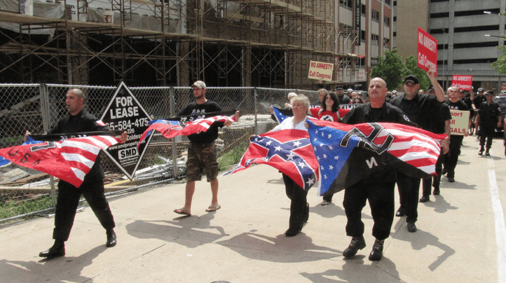 Os Estados Unidos da América cotidianamente vêem episódios de apropriação da bandeira, especialmente por parte de movimentos de supremacia branca e anticomunistas. A seita racista denominada Klu Klux Klan utilizou deste expediente durante seu auge no século passado.
