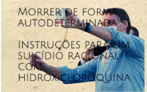O código penal brasileiro proíbe qualquer ato de incentivo ao suicídio. Acidental ou propositadamente, os que se intoxicarem com Hidroxicloroquina podem ligar para 0800 722 6001.