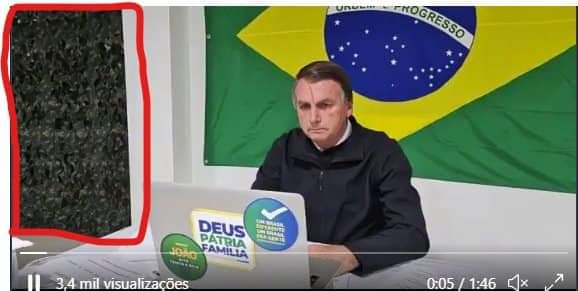 Internautas notaram semelhança entre o fundo de dois ambientes: o de um vídeo encenado para simular as FARC (Forças Armadas Revolucionárias da Colômbia) e o de uma live transmitida durante a última entrevista de Bolsonaro ao programa Pânico.