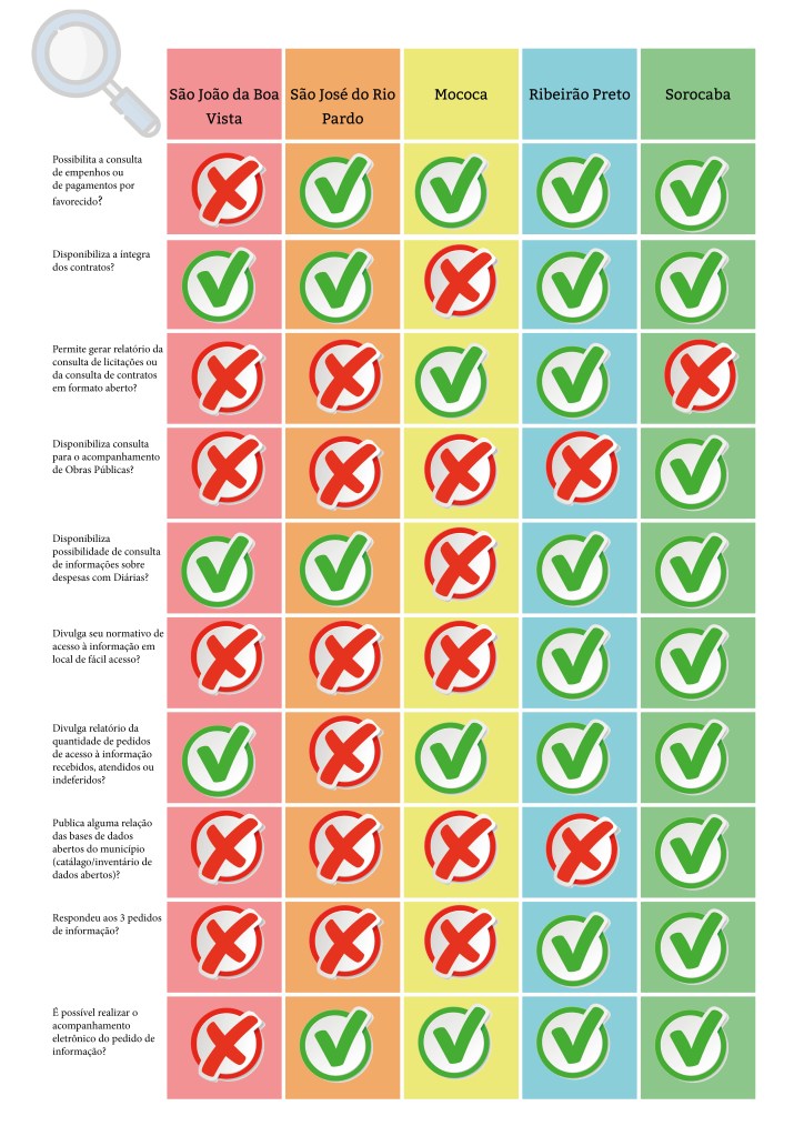Mais abaixo, em 569º, temos São João da Boa Vista (4,87). Apesar da baixa nota, o município tem uma vantagem em relação à Mococa: deixa transparente as viagens oficiais, informando destino, motivo, viajante e dinheiro gasto. Mesmo assim, ao não divulgar a relação de despesas por empresa, a prefeitura impossibilita que a população investigue se algum aliado político está sendo ilegalmente favorecido. Lá, como aqui, a Lei de Acesso à Informação foi desrespeitada nas três tentativas de obtenção de informações.