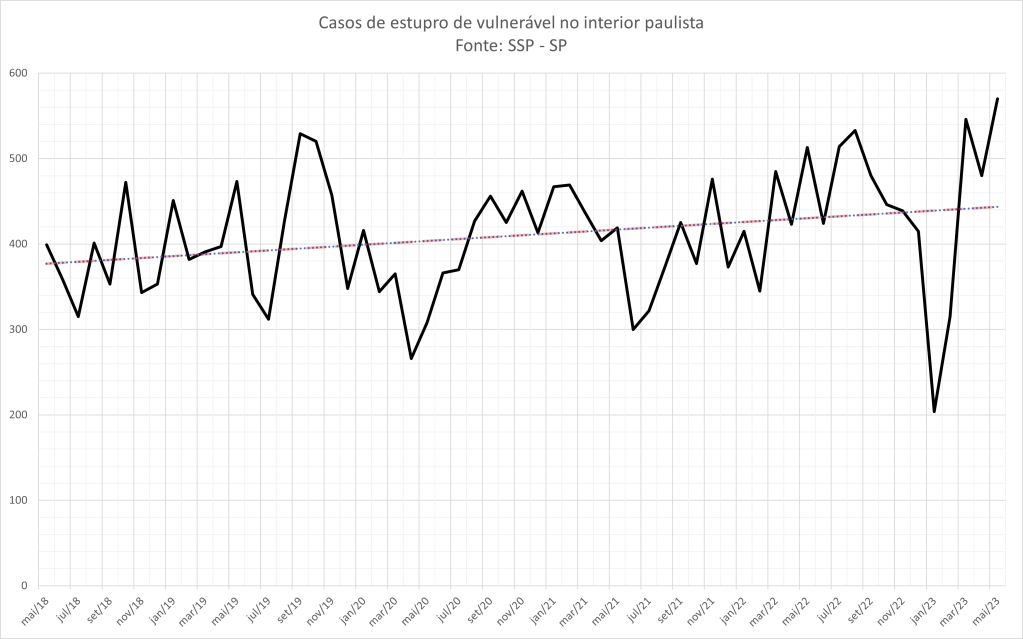 📈O DEINTER9 – departamento da polícia civil que cuida da região em que Mococa faz parte – registrou aumento de 28% nos casos de estupro e estupro de vulnerável entre maio de 2022 e maio de 2023. Os dados são da Secretaria de Segurança Pública de São Paulo. O aumento supera o estadual, que foi de 19%.