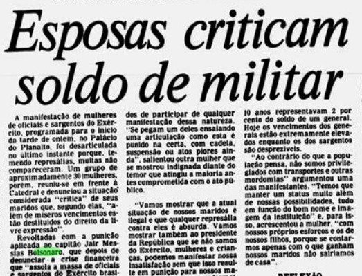 (Pensionista militar, em apoio a bolsonaro. Correio Braziliense, 1986)
